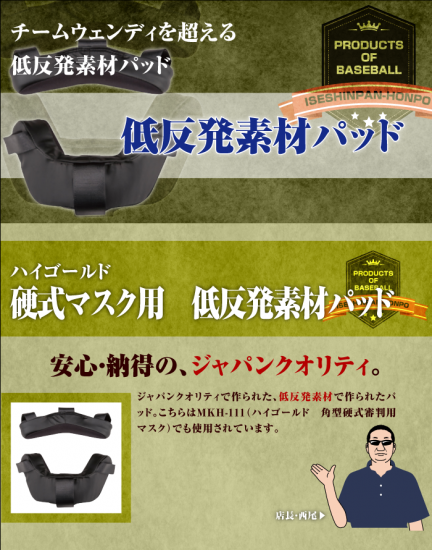 フォローよろしくお願いします! ホーム > アクセサリー > マスクパッド ホーム > ハイゴールド ハイゴールド 軟式マスク用 低反発素材パッド<カラーはブラックのみです> ジャパンクオリティで作られた低反発素材で作られています。 <カラー>:ブラックのみ 「タン」は販売停止となりました。 販売価格 6,050円(税550円) 型番 MKP-300 レビューを見る(0件) レビューを投稿 オプションの値段詳細 特定商取引法に基づく表記(返品等) この商品を友達に教える この商品について問い合わせる 買い物を続ける ツイート カラー ブラック カートに入れる あなたにおすすめの商品 伊勢審判本舗 フェイスマスク用ハーネス <セール!>シュアプレイ フェイスマスク用ハーネス 伊勢審判本舗 フェイスマスク用バイザー(スモークレンズ)